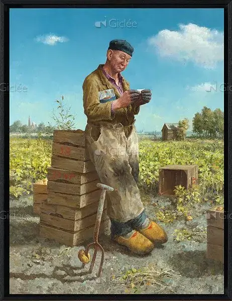 Gecertificeerde reproductie genaamd “Aardappelsteker”, oorspronkelijke geschilderd door de kunstenaar Marius van Dokkum.