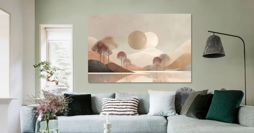 Jouw gekozen kunst als print op doek, gespannen in een aluminium frame. Snel en eenvoudig te verwisselen voor een frisse uitstraling, helemaal zoals jij het wilt.