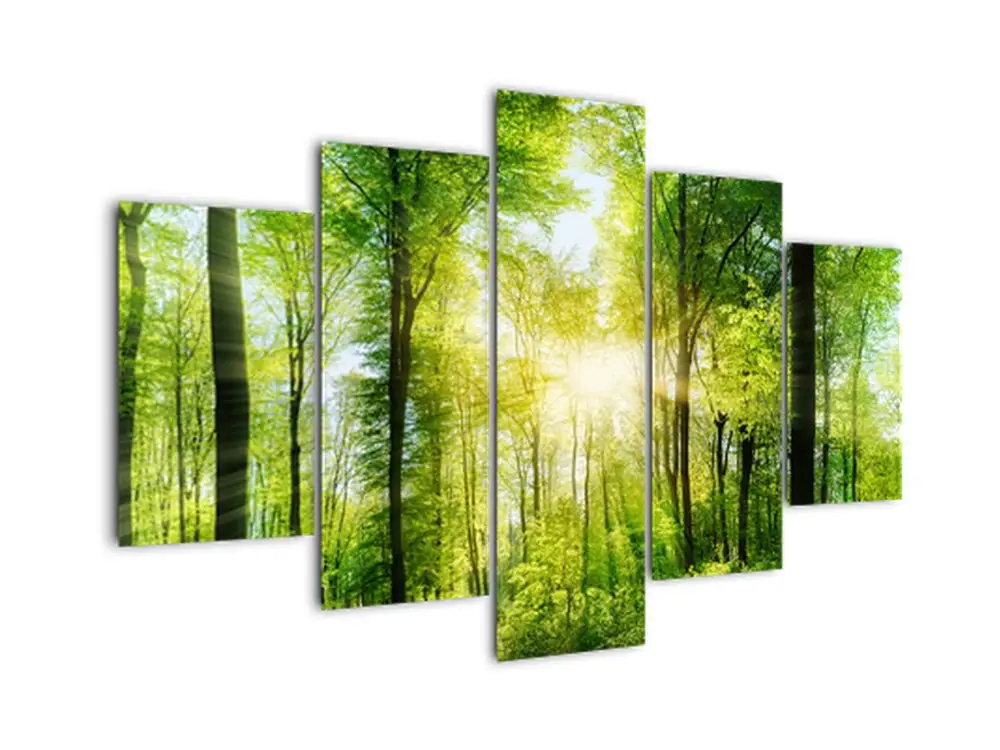 Meilleur Prix Schilderij – Ochtendschemering in het bos – Vijfdelig 150×105 cm