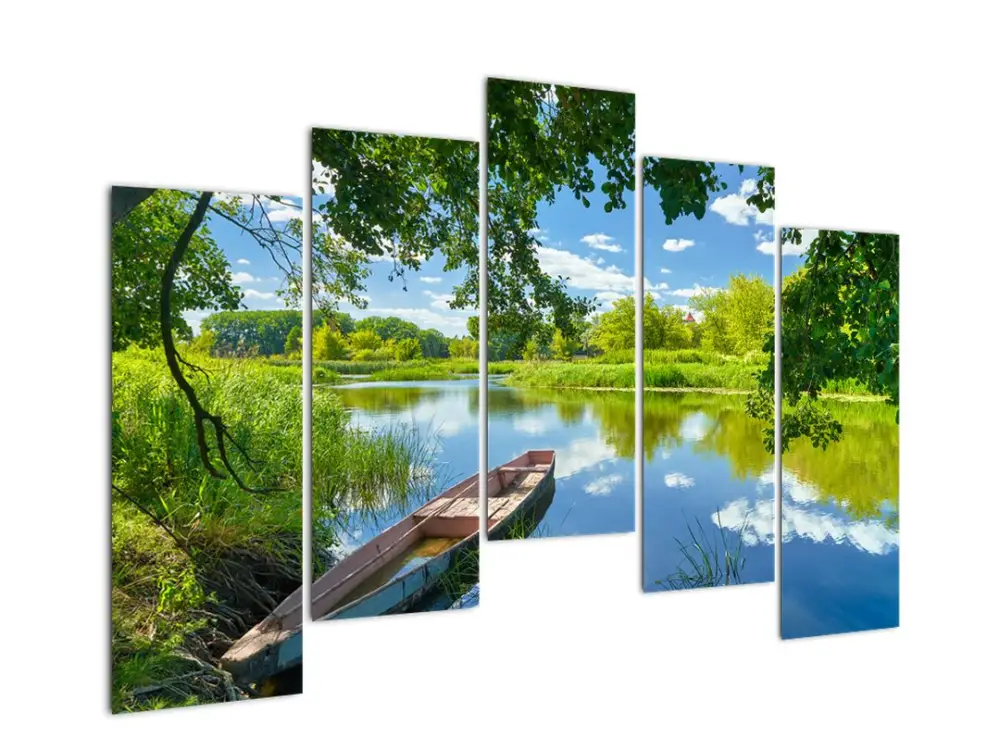 Meilleur Prix Schilderij – Rivier met bootje in de zomer – Vijfdelig 125×90 cm