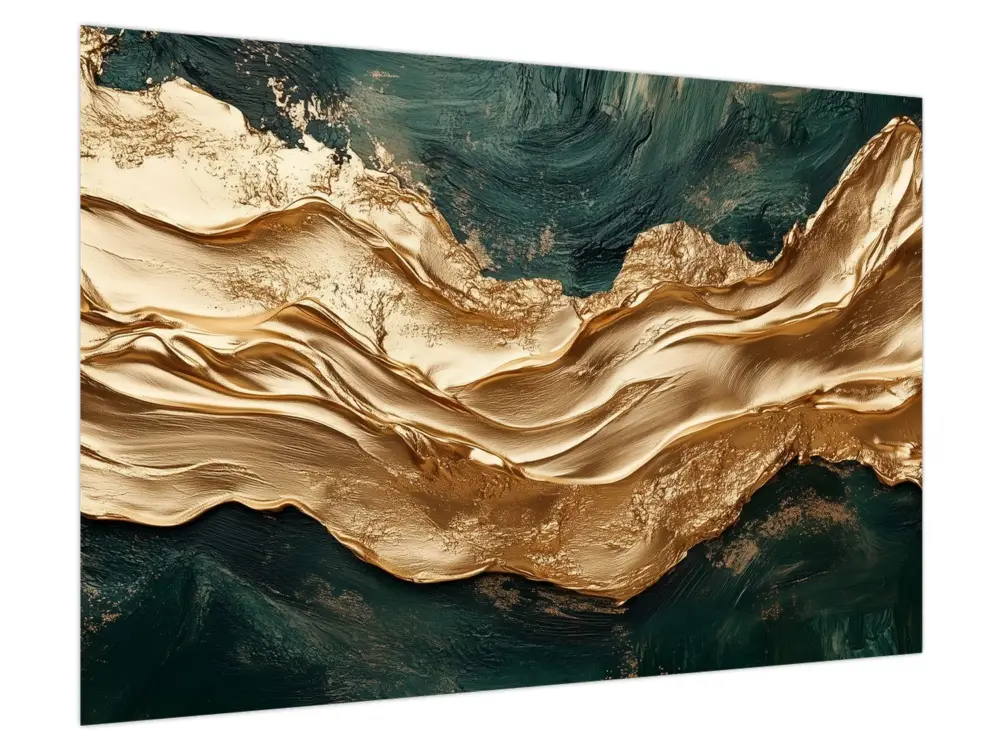 Offre Exclusive Schilderij – Groene abstractie met goud II – Eendelig 90×60 cm