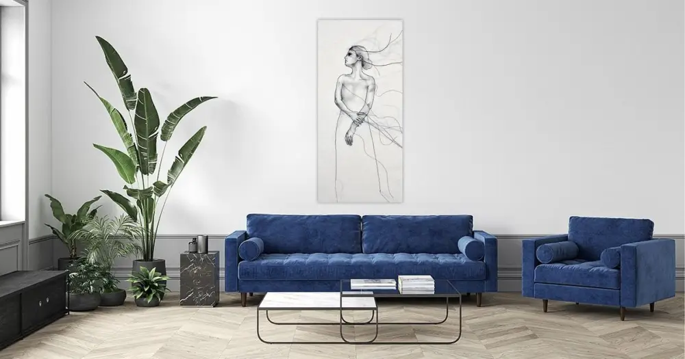 Jouw gekozen kunst als print op doek, gespannen in een aluminium frame. Snel en eenvoudig te verwisselen voor een frisse uitstraling, helemaal zoals jij het wilt.