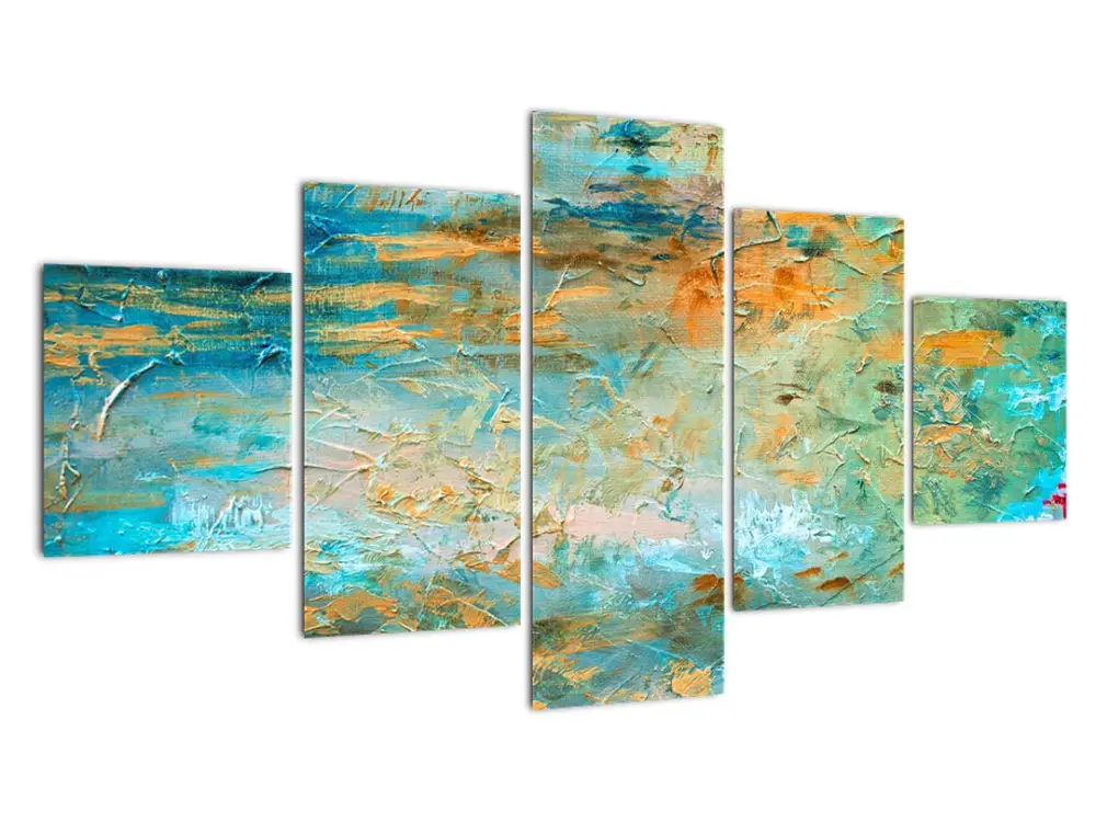 Schilderij – Blauwe abstracties – Vijfdelig 125×70 cm Meilleur Prix