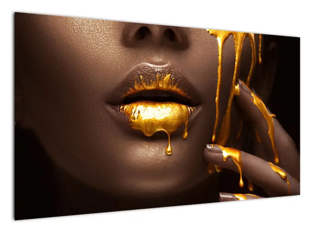 Usine Directe Schilderij – Vrouw met gouden lippen – Eendelig 120×70 cm