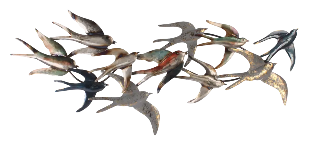 Mooi wandobject “Uccello” met 11 vogels/zwaluwen. De dynamische vormen en de verschillende lagen van de metalen componenten geven deze wanddecoratie een speels diepte-effect. Net even wat anders voor in de (huis)kamer!