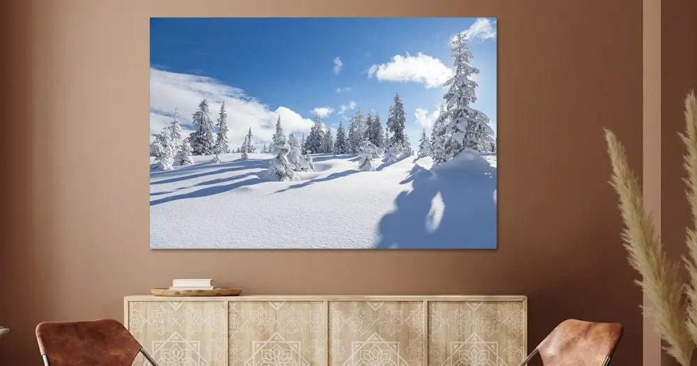 Jouw gekozen kunst als print op doek, gespannen in een aluminium frame. Snel en eenvoudig te verwisselen voor een frisse uitstraling, helemaal zoals jij het wilt.