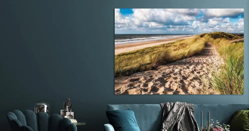 Jouw gekozen kunst als print op doek, gespannen in een aluminium frame. Snel en eenvoudig te verwisselen voor een frisse uitstraling, helemaal zoals jij het wilt.