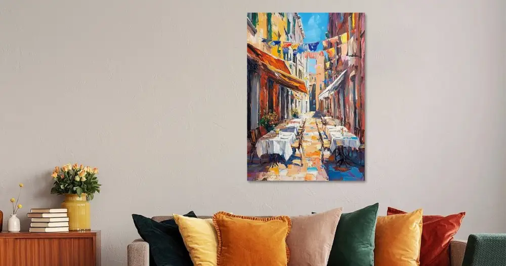 Jouw gekozen kunst als print op doek, gespannen in een aluminium frame. Snel en eenvoudig te verwisselen voor een frisse uitstraling, helemaal zoals jij het wilt.