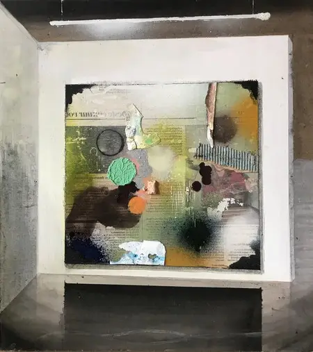 - Techniek: Gemengde techniek op paneel