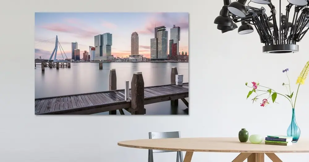 Jouw gekozen kunst als print op doek, gespannen in een aluminium frame. Snel en eenvoudig te verwisselen voor een frisse uitstraling, helemaal zoals jij het wilt.