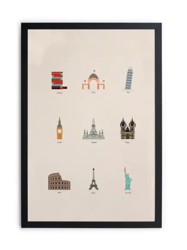 Zwarte lijst met kader 40×30 beroemde gebouwen Acheter En Ligne